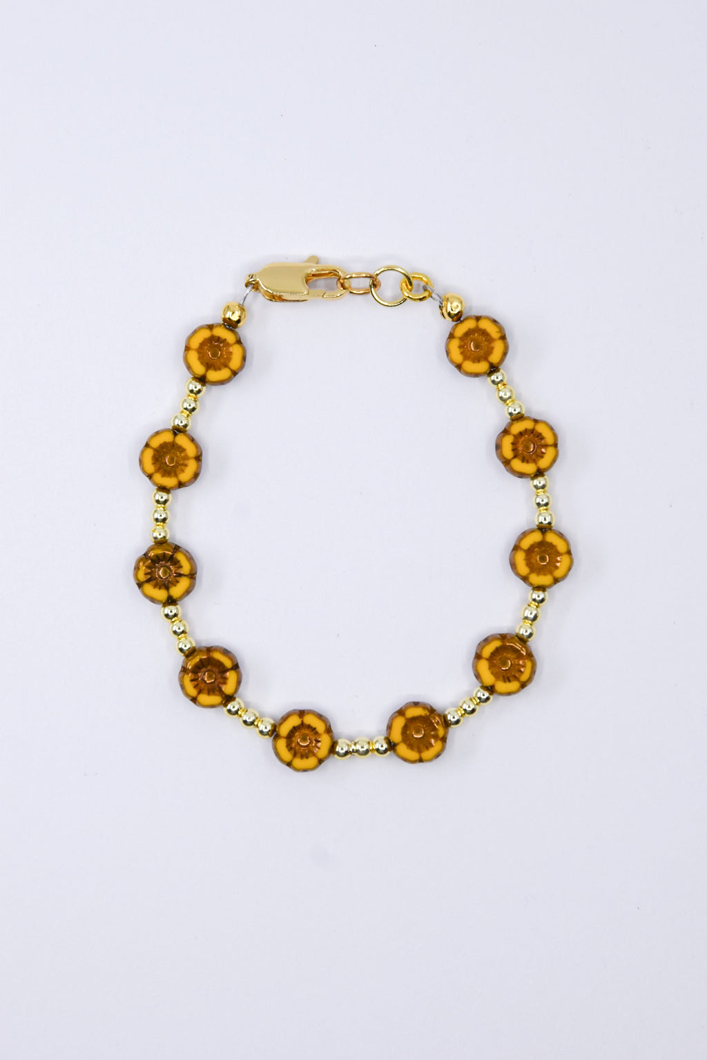 Mustard Yellow Czech Glass Floral